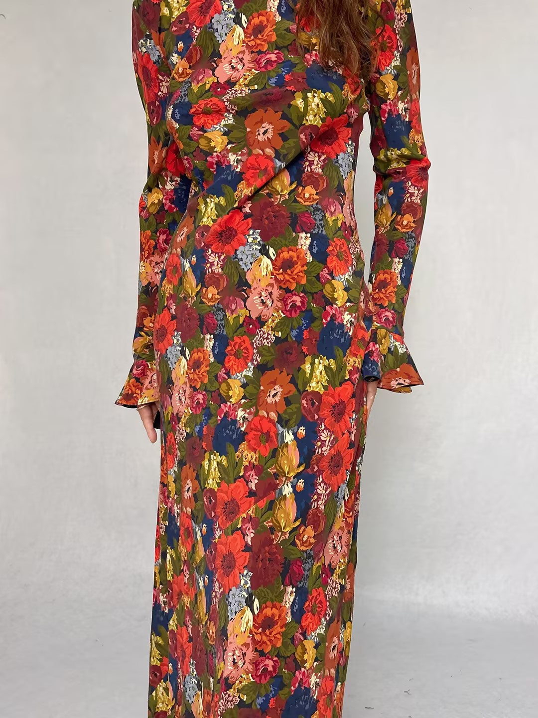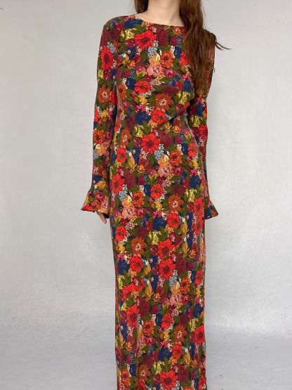 Retro Floral Print: Rich colors and large floral prints create a retro, "oil painting" feel. The vibrant red, yellow, and green color scheme is eye-catching and appealing to all skin tones, embodying a holiday vibe and an artistic touch, effortlessly creating a "retro pastoral" vibe.