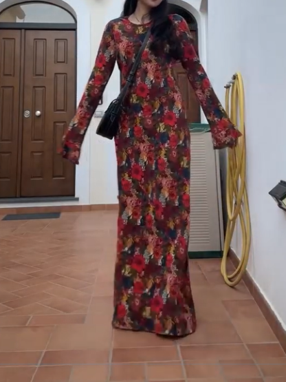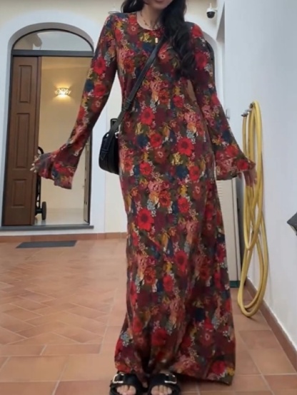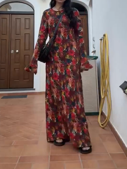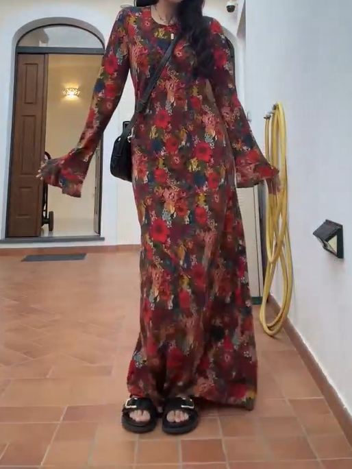 Fit: A loose straight-cut design with long sleeves and a full skirt is flattering and flattering, creating a slimming effect. The flared sleeves add a romantic touch, creating a graceful and flowing look. The floor-length length enhances a relaxed, relaxed feel, flattering any figure and highlighting a relaxed, effortless temperament.